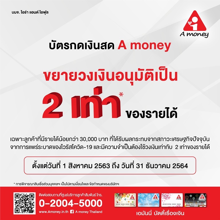 บัตรกดเงินสด A money ขยายเป็น 2 เท่าของรายได้*