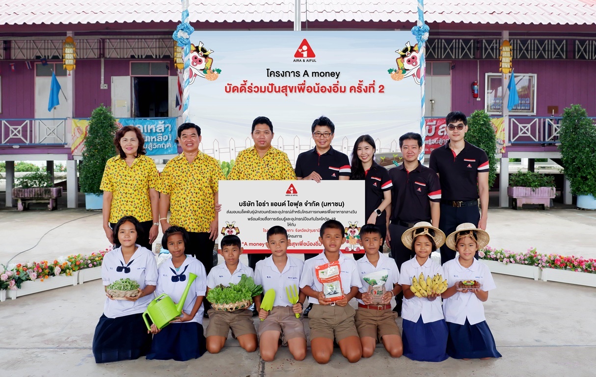 นายซูสุมุ อิโตะ (ที่ 3 จากขวา) ผู้บริหารสายงานการขายและปฏิบัติการ บริษัท ไอร่า แอนด์ ไอฟุล จำกัด (มหาชน) นำทีมพนักงานร่วมเปิดตัวโครงการ "A money บัดดี้ร่วมปันสุขเพื่อน้องอิ่ม ครั้งที่ 2" ซึ่งเป็นโครงการเพื่อสังคมที่บริษัทฯ จัดขึ้นโดยมีเป้าหมายหลักในการให้ความช่วยเหลือและสนับสนุนโครงการเกษตรเพื่ออาหารกลางวัน ด้วยการส่งมอบเมล็ดพันธุ์ผักสวนครัว และอุปกรณ์เพาะปลูก เพื่อให้เยาวชนไทยได้มีมื้ออาหารหลักที่มีคุณภาพ ครบถ้วนตามหลักโภชนาการ สามารถเติบโตได้อย่างแข็งแรงสมวัย โดยมี นายสายธาร คุ้มครอง (ที่ 4 จากขวา) ผู้อำนวยการโรงเรียนวัดท้ายเกาะ พร้อมด้วยคณะครูร่วมให้การต้อนรับ ณ โรงเรียนวัดท้ายเกาะ อำเภอสามโคก จังหวัดปทุมธานี