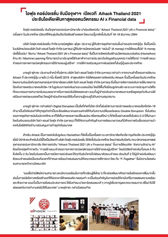 ไอฟุล คอร์ปอเรชั่น จับมือจุฬาฯ เปิดเวที Aihack Thailand 2021