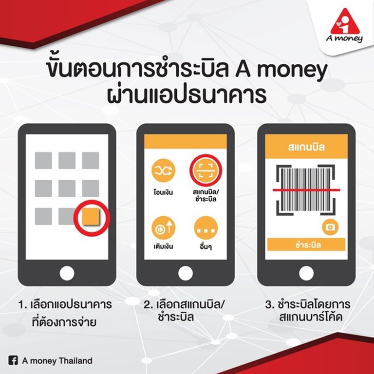 สำหรับลูกค้าของบัตรกดเงินสด A money โดยสามารถเลือกชำระบิลผ่านช่องทางเคาน์เตอร์และช่องทางอิเล็กทรอนิกส์ อาทิ บริการธนาคารบนอินเทอร์เน็ต และเครื่องเอทีเอ็มของธนาคารที่ร่วมให้บริการภายใต้บริษัท เนชั่นแนล ไอทีเอ็มเอ๊กซ์ จำกัด ทั้งนี้ เพื่อเป็นการเพิ่มช่องทางในการให้บริการสำหรับผู้ที่ถือบัตรกดเงินสดเอมันนี่ในการเลือกชำระบิลได้อย่างสะดวกยิ่งขึ้น