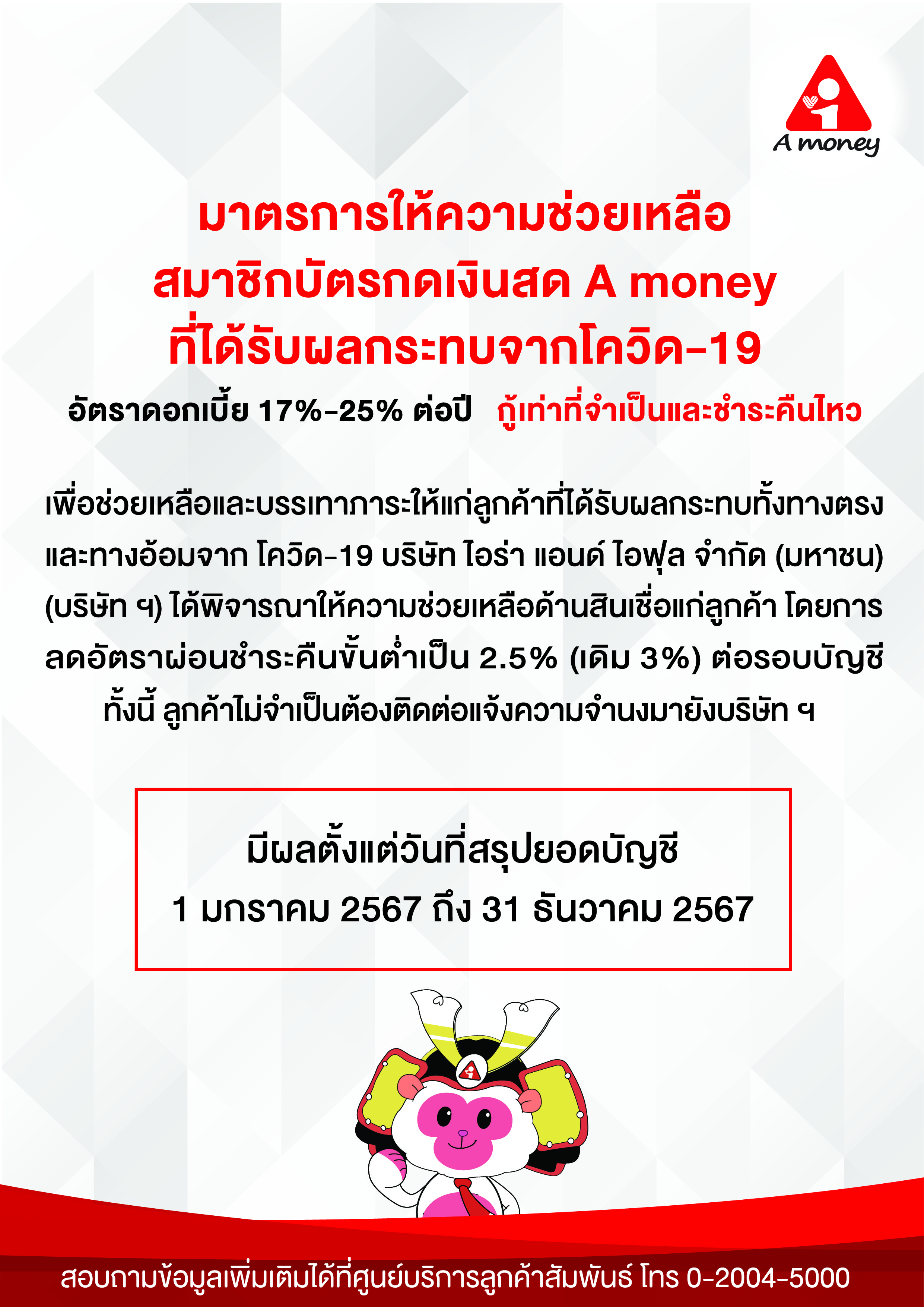 ประกาศขยายเวลา ลดอัตราผ่อนชำระขั้นต่ำ 2.5% (จากเดิมชำระขั้นต่ำ 3%) ต่อรอบบัญชี