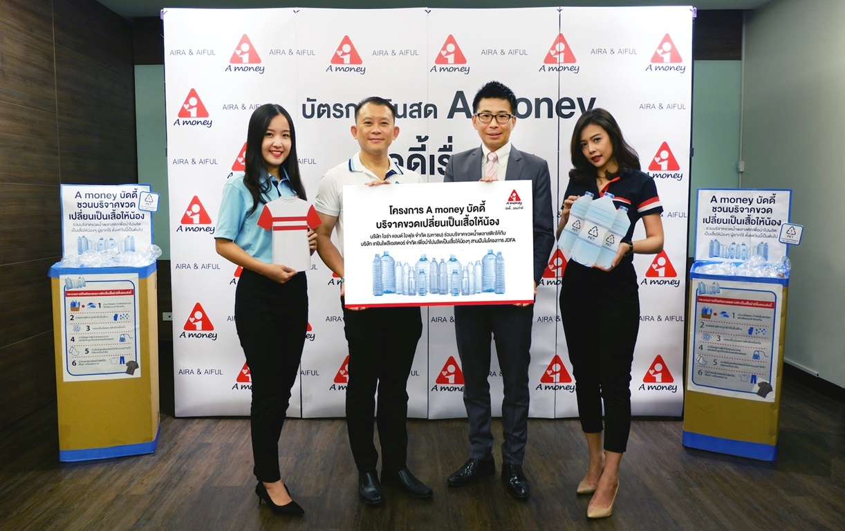 นายซูสุมุ อิโตะ (ที่3 จากซ้าย) ผู้อำนวยการอาวุโสฝ่ายวางแผนและกลยุทธ์การตลาด บริษัท ไอร่า แอนด์ ไอฟุล จำกัด (มหาชน) ร่วมส่งมอบขวดน้ำดื่มชนิดใสหรือพีอีที (PET: Polyethylene Terephthalate) ที่ได้รับบริจาคและรวบรวมจากพนักงานในองค์กร ผ่านกิจกรรม "A money บัดดี้ชวนบริจาคขวดเปลี่ยนเป็นเสื้อให้น้อง" จำนวน 100 กิโลกรัม โดยขวดที่ได้รับจากการบริจาคทั้งหมดจะถูกนำไปรีไซเคิลเป็นเส้นใยโพลีเอสเตอร์ เพื่อนำมาผลิตเป็นเสื้อยืดและส่งต่อให้กับเยาวชนในโครงการ Japan Dream Football Association (JDFA) โดยมี นายวีระชัย คริสต์วทัญญู (ที่2 จากซ้าย) ผู้จัดการฝ่ายขาย แผนกเส้นใยสั้นและวัสดุไม่ทอ (Manager of Staple Fiber & Non-Woven Material Sales Division) บริษัท เทยิน โพลีเอสเตอร์ (ประเทศไทย) จำกัด ผู้ผลิตและจัดจำหน่ายเส้นใยโพลีเอสเตอร์ชั้นนำในประเทศไทยให้เกียรติรับมอบ ณ อาคารจัตุรัสจามจุรี เมื่อเร็วๆ นี้