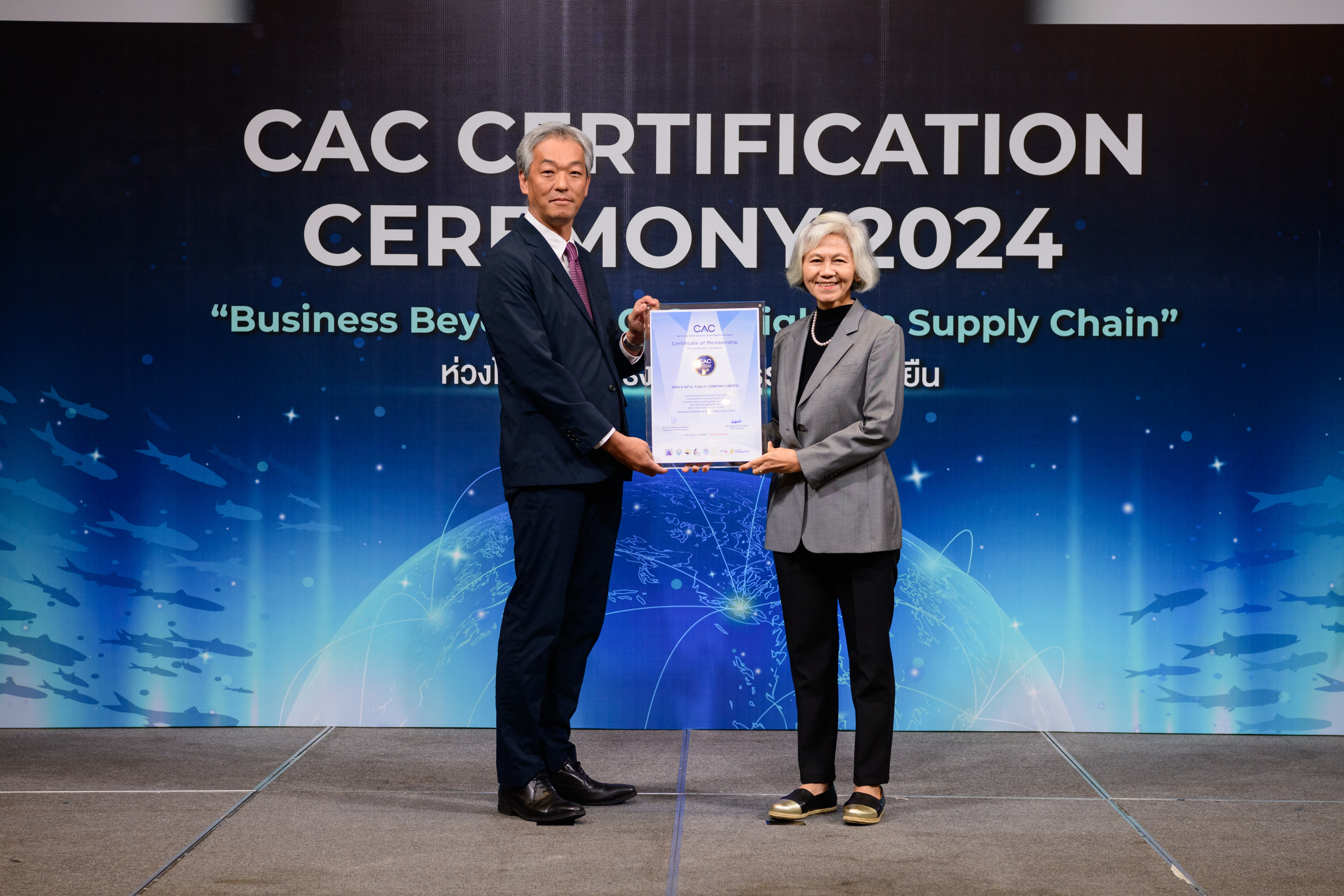 นายคิมิฮิโระ โอโมริ (ซ้าย) ประธานเจ้าหน้าที่บริหาร บริษัท ไอร่า แอนด์ ไอฟุล จำกัด (มหาชน) ร่วมรับมอบประกาศนียบัตร ในฐานะสมาชิกแนวร่วมต่อต้านคอร์รัปชันของภาคเอกชนไทยในงาน “CAC Certification Ceremony 2024” ซึ่งจัดโดยสมาคมส่งเสริมสถาบันกรรมการบริษัทไทย (Thai IOD) เพื่อประกาศเกียรติคุณให้กับบริษัทที่ผ่านการรับรองในไตรมาสที่ 3 และ 4 ประจำปี 2566 โดยมี นางอรนุช อภิศักดิ์ศิริกุล (ขวา) กรรมการโครงการการสร้างแนวร่วมปฏิบัติของภาคเอกชนไทยในการต่อต้านการทุจริต (CAC) เป็นประธานมอบ ณ ห้อง Fuji Grand Ballroom โรงแรมนิกโก กรุงเทพมหานคร