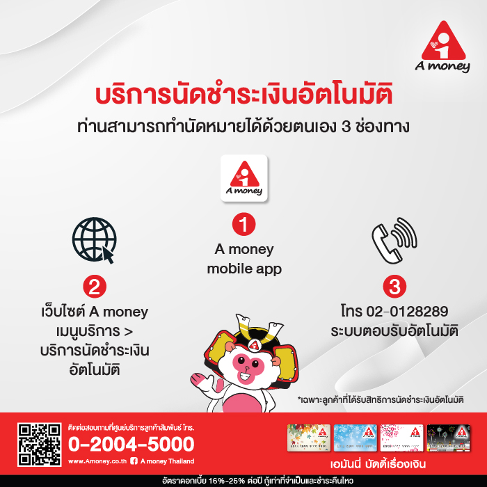 2.เว็บไซต์ A money เมนูบริการ > บริการนัดชำระเงินอัตโนมัติ