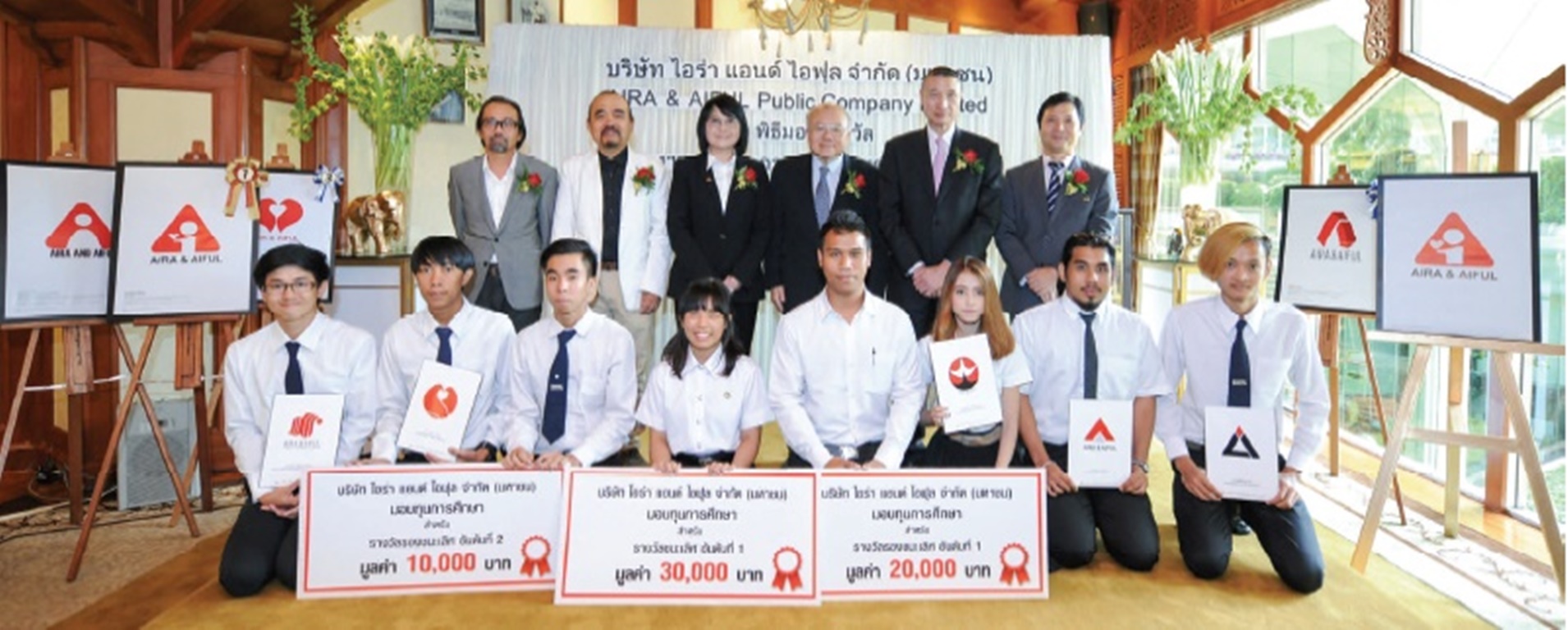 บมจ.ไอร่า แอนด์ ไอฟุล จัดพิธีมอบรางวัลชนะเลิศการประกวดออกแบบผลงานตราสัญลักษณ์ของบริษัทฯ เมื่อวันที่ 1 เมษายน 2558 โดยมีน้องๆ จากหลากหลายสถาบันการศึกษาให้การต้อนรับเป็นอย่างดี ส่งผลงานเข้าร่วมประกวดกว่า 150 ผลงาน ในการนี้คุณนลินี งามเศรษฐมาศ ประธานเจ้าหน้าที่บริหาร บมจ.ไอร่า แคปปิตอล คุณวิเชียร เมฆตระการ ประธานกรรมการ บมจ.ไอร่า แอนด์ ไอฟุล (คนที่ 3 จากขวา) อดีตประธานเจ้าหน้าที่บริหาร บริษัท แอดวานซ์ อินโฟร์ เซอร์วิส จำกัด (มหาชน) ผู้คร่ำหวอดในแวดวงธุรกิจการสื่อสาร คุณโยชิตะกะ ฟุกุดะ ประธานเจ้าหน้าที่บริหาร AIFULCORPORATION (คนที่ 2 จากขวา) และคุณคัทสุฮิโกะ มาโดโนะ ประธานเจ้าหน้าที่บริหาร บมจ.ไอร่า แอนด์ ไอฟุล พร้อมด้วยคณะกรรมการผู้ทรงคุณวุฒิ นำโดยผู้ช่วยศาสตราจารย์ไพรวัลย์ ดาเกลี้ยง จิตรกรภาพเหมือน และอาจารย์ประจำคณะมัณฑนศิลป์ มหาวิทยาลัยศิลปากร ร่วมเป็นเกียรติในการมอบรางวัลการประกวดออกแบบตราสัญลักษณ์ (Logo) ของ บมจ.ไอร่า แอนด์ ไอฟุล พร้อมแสดงวิสัยทัศน์และแผนธุรกิจ