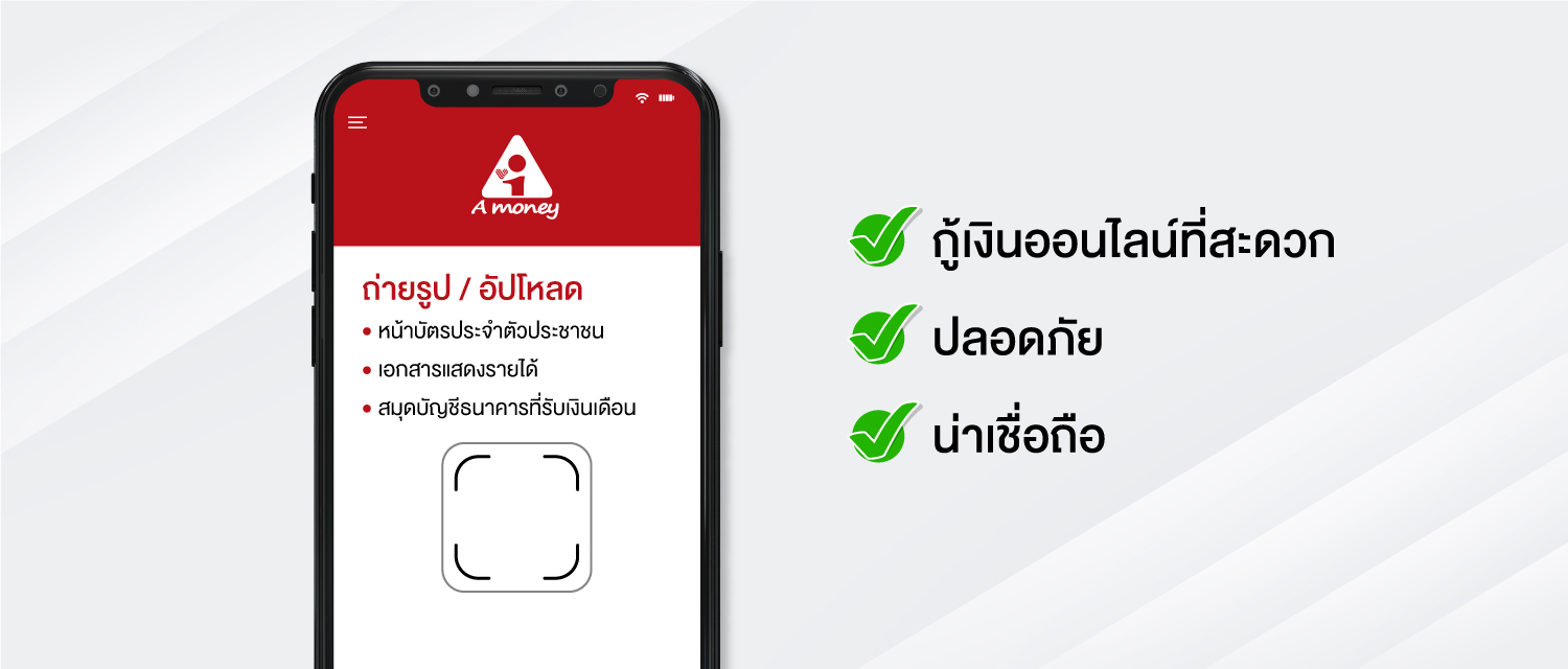 - รับบัตรกดเงินสด A money: เมื่อคุณได้รับการอนุมัติ คุณจะได้รับบัตรกดเงินสด A money ทางไปรษณีย์ภายใน 7 วันทำการหากคุณเลือกรับบัตรพลาสติก แต่ถ้าหากคุณเลือกบัตร e-Card คุณจะได้รับบัตรทันทีผ่านแอปพลิเคชัน